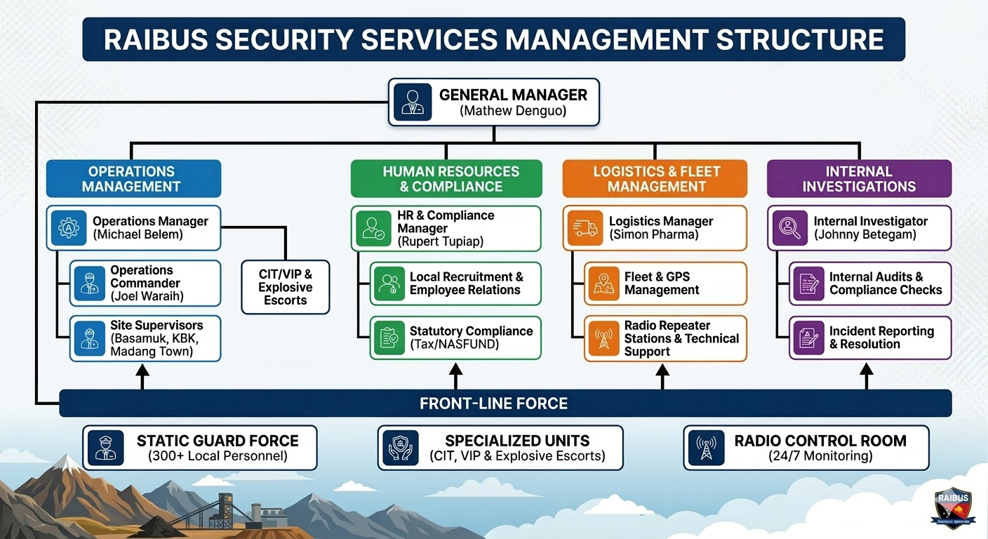 At Raibus Security Services, our journey is intertwined with the legacy of Raibus Limited, founded by the Four Land Owner Groups of Ramu Nico Mine (MCC). These four groups include Owner Groups of Ramu Nico Mine (MCC) known as KBK, MAIGARI,